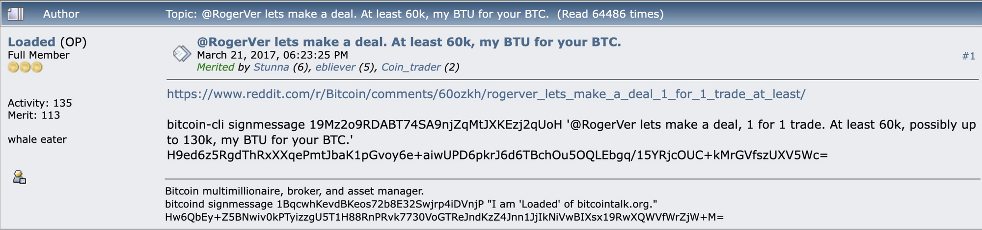 During this period, James would also enjoy flexing his Bitcoin holdings on the Bitcoin Talk forum under a new account called “Loaded”. He used this account to LARP as a millionaire broker and asset manager, singing from the address that held 40,000 BTC to convince other users on the forum. Loaded regularly talked to himself through the mb300sd account and there is overlap with the known activities of James Zhong. For example, on January 17th this girl tweeted “one week from today we’ll be on our way to Miami”, tagging James. Then on January 29th, Loaded mentions that he is still hungover from his trip to Miami. The pictures confirm that he was on a boat with some ladies, and it was lit. Loaded would go on to claim that at one point he was managing over 200,000 BTC for his clients, and that he regularly flew into China on a private jet loaded with US Dollars to buy Bitcoin OTC. But then, over the years, the account became less active and Loaded would only chime in very rarely to let people know that he was either hammered or doing some charlie. But perhaps Loaded’s most notable post was his last, in March 2017, near the height of the block size wars. At this time Bitcoiners were preparing for a chain split between Bitcoin Core and Bitcoin Unlimited, which would have resulted in all BTC holders receiving an equivalent amount of a new coin called BTU. Loaded proposed to Roger Ver, a supporter of Bitcoin Unlimited’s BTU, that they did a 1 to 1 trade where Loaded would receive Roger’s BTC and Roger would receive Loaded’s BTU. Loaded said he was willing to trade at least 60,000 BTC, but possibly up to 130,000 BTC. Roger Ver responded, agreeing to the offer. But after reaching out to Loaded, Roger never heard back and Loaded went AWOL. The reason for Loaded’s disappearance is unknown, but perhaps it has something to do with the fact that some people worked out his coins originated from the Silk Road’s hot wallet and he got spooked. When the hard fork with Bitcoin Cash occurred in August 2017, James Zhong deposited the 50,000 Bitcoin Cash he received to an overseas exchange and converted them to BTC, resulting in the addition of 3,500 BTC to his stack.