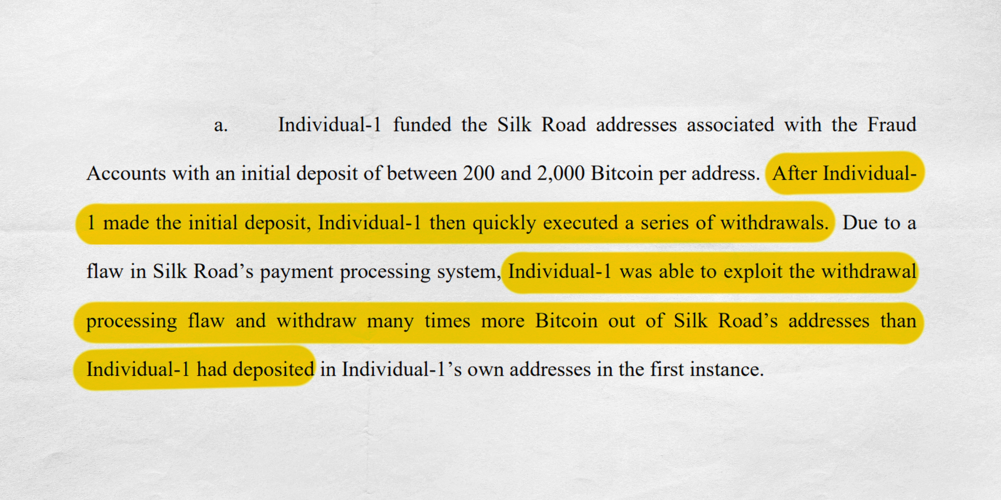 According to documents filed in the United States District Court of Southern New York, it was on September 19th, 2012, that James Zhong, aged 22, began exploiting a vulnerability in Silk Road’s infrastructure that allowed him to steal Bitcoin from the marketplace. What he discovered was that by depositing an amount of BTC to his Silk Road account and then quickly executing a series of withdrawals for that same amount, the payment processing system would be tricked into withdrawing many times more BTC than had been deposited. For example, James began by depositing 500 BTC to his Silk Road deposit address and less than 5 seconds later he executed 5 withdrawals of 500 BTC each, which resulted in a net gain of 2,000 BTC. While the heist was in progress, James made a commenton a Bitcoin Talk thread speculating about an address belonging to Silk Road. He said he had been studying Silk Road’s built-in mixing service and discovered that they held about 50,000 BTC in their hot wallet. Over a few days and using 9 different accounts, James Zhong would repeat the exploit he discovered until he had completely drained the Silk Road’s hot wallet. These Bitcoins were then run through some coin mixers before being consolidated into 2 addresses, one containing 40,000 BTC and another with 10,000 BTC.
